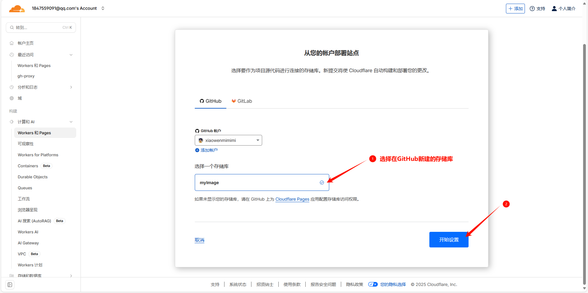 - 绑定一个仓库(我这里绑定的是刚刚新建在 GitHub 的 myImage 仓库)