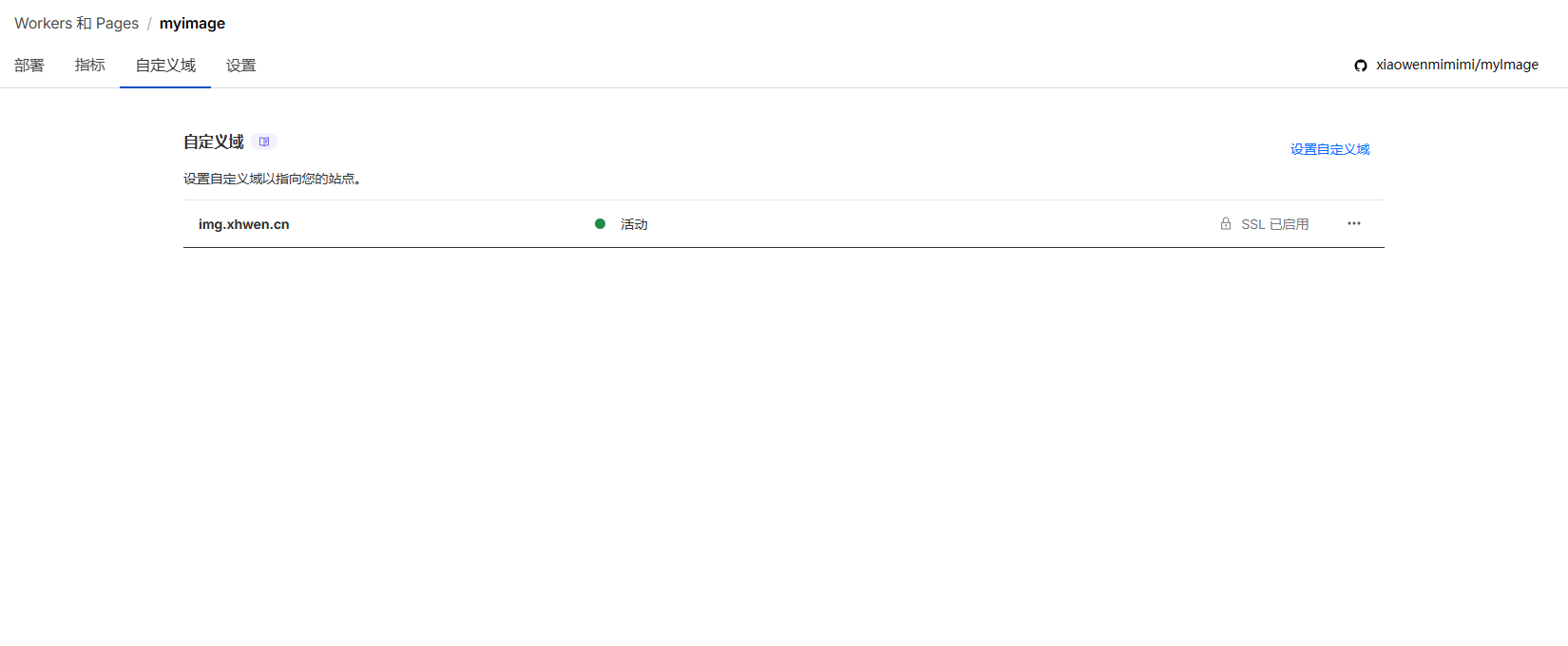 | 自定义域名 | https://myimage-9r1.pages.dev/gh/xiaowenmimimi/myImage/main (Cloudflare CDN 生成的地址) |