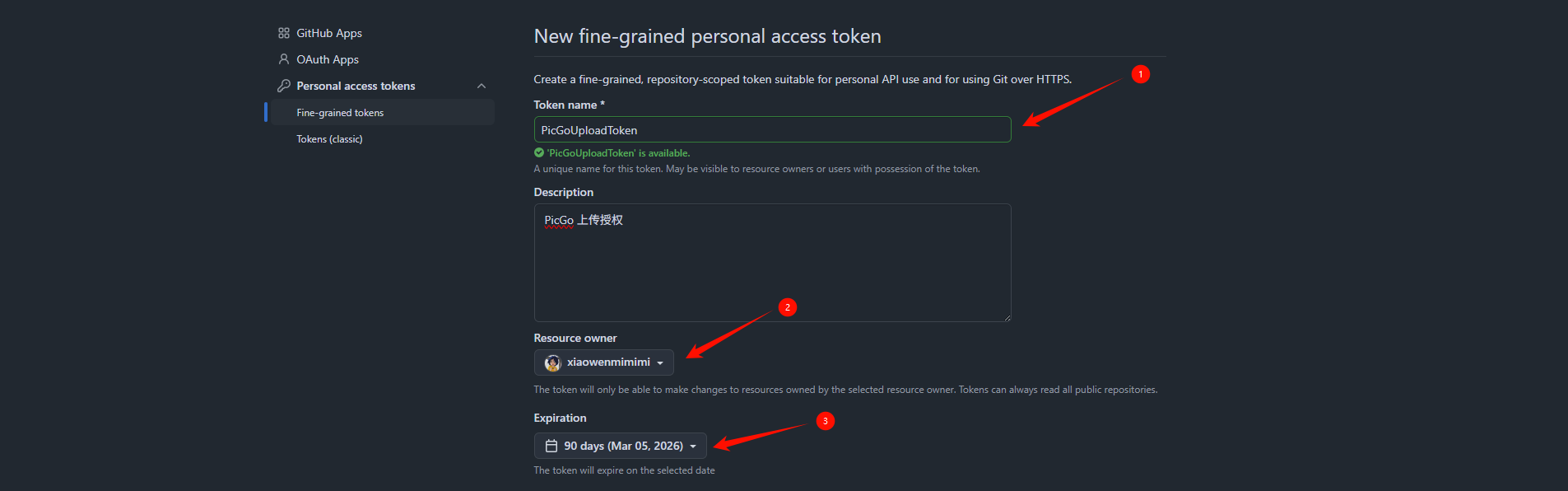 - Expiration:建议设置较长时间(安全起见可设置 90 天或 1 年)。